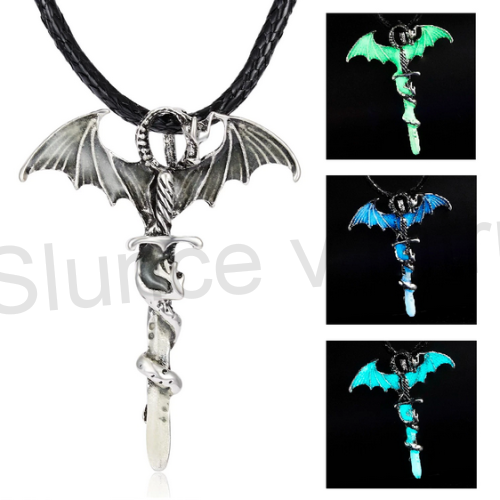 Krásný, masivní přívěšek z kovu znázorňuje meč králů, který je obtočen drakem, drak - dávným strážcem královských klenotů. Přívěsek má krásně kovový lesk a díky dračímu motivu je navíc hezkým ochranným amuletem, který člověku dodává "dračí" sílu a odvahu k překonání jakékoli překážky. Po nasvícení svítí, je to takové malé světlo. Vhodný pro všechny retro šperk.