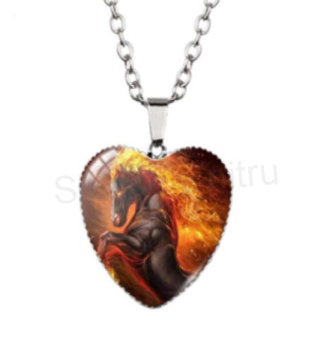 Nádherné řetízkové provedení náhrdelníku s přívěskem koně, koník, kůň, hřebec do tvaru srdce. Náhrdelník je velmi modní, pro všechny věkové kategorie. Řetízek je zakončený karabinkou, přívěšek a řetízek je z nerezavé oceli a skla.