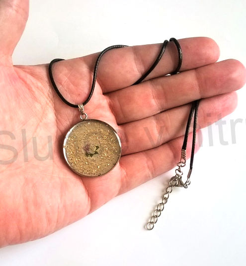 Šňůrkové provedení náhrdelníku s přívěškem orgonitu s růží, růže, růžička. Náhrdelník je jemný modní, pro všechny věkové kategorie. Voskovaná kožená šňůrka je zakončená karabinkou, přívěšek je z kvalitního z chirurg. oceli zalitý pryskyřičnou směsí.