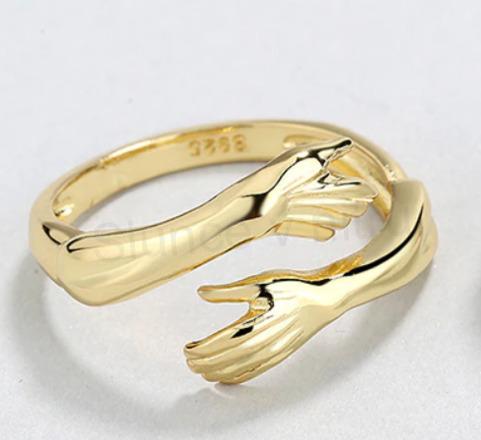 Elegantní prsten milenci, objetí, obejmutí jemně pozlaceno. Prstýnek je decentně vyrobený, tak aby bylo vidět jeho dokonalé propracovaní rukou do tvaru obětí. Jeho velkou výhodou je, že se dá jemně nastavit, nádherné propracovaní, hladké, ozdobné a lesklé.