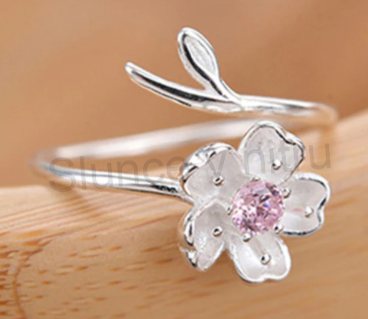 Překrásný otevřený, nastavitelný silně postříbřený prsten s motivem rozkvetlého třešňového květu, sakura, má překrásné tvarování do detailů. Prsten je zpracován do detailů do třešňového květu. Nádherný jemný šperk pro všechny. Jeho velkou výhodou je, že se da nastavit podle vaší velikosti, už se vám nestane, že by byl malý, nádherné propracovaní, hladké, ozdobné a lesklé.