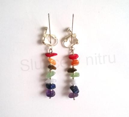 Nádherné čakrové náušnice z nerez oceli. Náušnice tvoří minerální zlomky, 7 druhů minerálních kamenů, vysoké kvality. Popis čakrových center ZDE. Nýtky, kuličky na kterých jsou zlomky minerálů, jsou postříbřené. Háčky jsou speciálním typem šroubovací zapínání, jsou velmi vhodné pro ty, kteří nemají propíchnuté ušní boltce, nebo pro ty, kdo má problém s nošením naušnic. Poslední dobou patří mezi oblíbené varianty zapinání. Stačí jen nasadit a upravit podle potřeby. Šroubovací náušnice jsou drobné, vhodné jak pro ženy, tak pro dívky. Náušnice dobře sedí, přitom nikde netlačí, nejsou těžké. Vhodné na jakoukoliv společnost, či každodenní nošení.