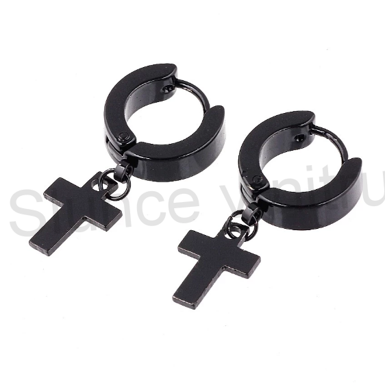 - Náušnice kroužky s křížky černé z chirurgické oceli (BB506)