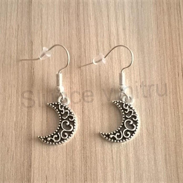 Zajimavé zdobené náušnice s měsícem. Ozdoby na háčkách jsou ve tvaru měsíce. Ozdoby jsou zpracovány do detailů, nepravidelné vzory. Krásna varianta v zajimavém provedení. Náušnice mají klasický afroháček, zakončený silikonvou puzetkou, lepší jištění proti ztrátě.