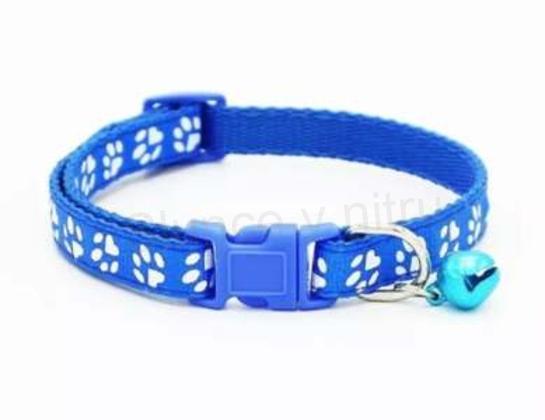 Obojek s tlapičkami a rolničkou modrý (T8)