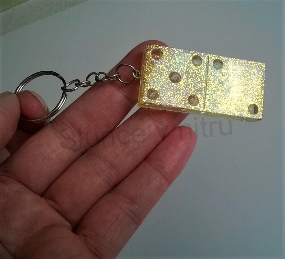 Unikatní pryskyřičná klíčenka domino - orgonit. Klíčenka je jako skutečné domino, kde každá má svoje puntíky, tečky na dominu. Krasný dárek, i jako dekorace.Každá klíčenka je jiná, podle vyražených puntíků, výběr je na vás kterou si zvolíte. Mohou se vyskytnout bublinky, které nejsou na škodu, spíše tvoří zajimavý efekt.