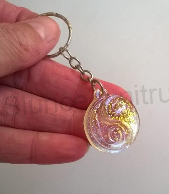 Zajimavá orgonitová klíčenka, přívěšek s motivem Jin a Jang. Krasný dárek. Mohou se vyskytnout bublinky, které nejsou na škodu, spíše tvoří zajimavý efekt.