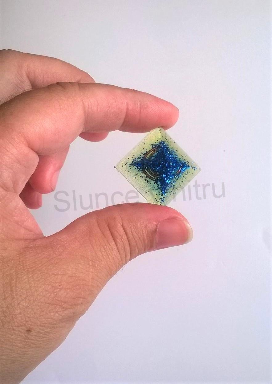 - Materiál: pryskyřice, kovový lesklý prášek, měděná spirálka, orgonitové