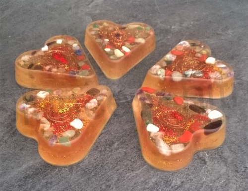 Orgonitové srdce - hmatka s minerálními kamínky, které slouží i zároveň jako tácek, či pod tácek. Krasný dárek, Lze použít jako ozdobu interiéru, nebo jako okrasná dekorace do kanceláři. Velmi vhodné i pro někoho jako dárek. Mohou se vyskytnout bublinky, které nejsou na škodu, spíše tvoří zajímavý efekt.
