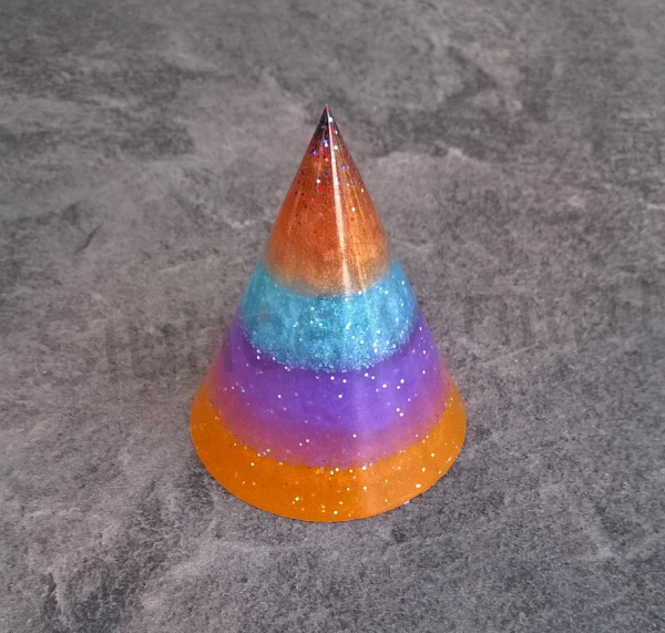 Unikatní orgonytový pryskyřičný duhový kužel. Krasný dárek, i jako dekorace, hodí se prakticky všude do kancelaří, bytu atd. Mohou se vyskytnout bublinky, které nejsou na škodu, spíše tvoří zajimavý efekt.