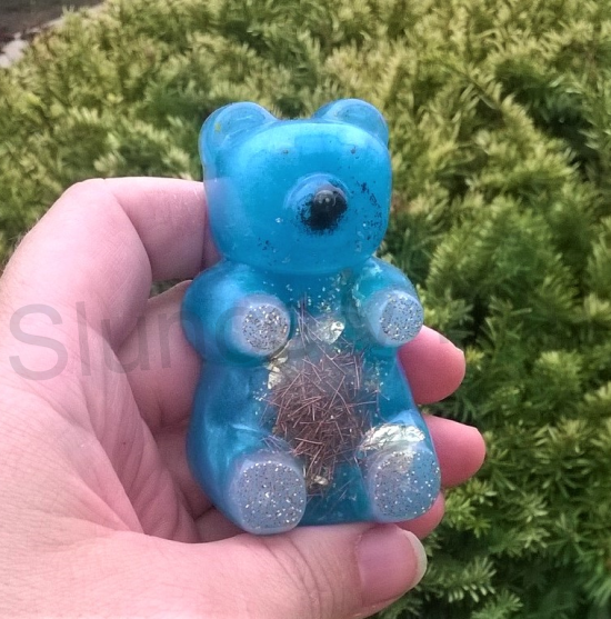Orgonitový medvídek modrý 3D 7,6x4,5x3 cm (PP136)