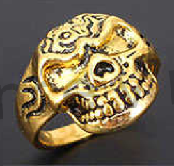 Originální retro, punc mohutný prsten s tvarem lebky, lebka, skull ve zlatém provedení Golden Skull, pro drsné muže, či ženy, zdobená černou patinou.