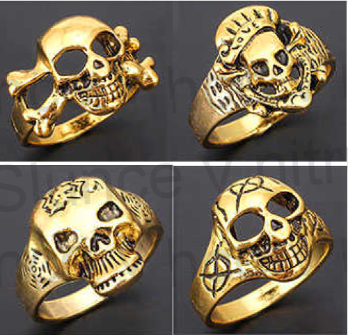 Originální retro, punc mohutný prsten s tvarem lebky, lebka, skull ve zlatém provedení Golden Skull, pro drsné muže, či ženy, zdobená černou patinou.