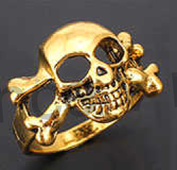 Originální retro, punc mohutný prsten s tvarem lebky, lebka, skull ve zlatém provedení Golden Skull, pro drsné muže, či ženy, zdobená černou patinou.