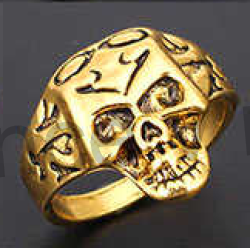 Originální retro, punc mohutný prsten s tvarem lebky, lebka, skull ve zlatém provedení Golden Skull, pro drsné muže, či ženy, zdobená černou patinou.