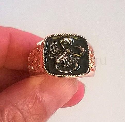 Zajimavý prsten z kvalitní zinkové slitiny se škorpionem. Prsten má po obouch stranách ozdobný ornament, ve růžové barvě. Uprostřed je černé smaltovaní, kde je zvýrazněn škorpion, krásné provedení modního prstenu. Prsten má růžové plátování.