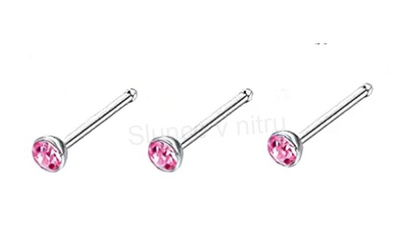 Piercing do nosu z chirurgické oceli 9 mm a zirkonem tmavo růžový číslo 2 (BB508)