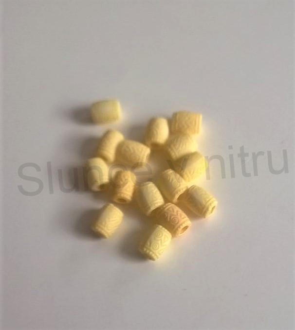 Plastový, akryl korálek váleček, soudek, ovál s dekorovaným povrchem. Vhodný na tvoření pro děti, či kreativní tvorby.