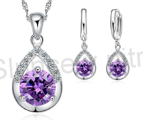 Postříbená souprava šperků kapka, slza se zirkony (BE81)