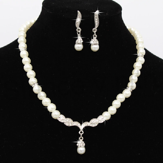 Modní postříbřená souprava, sada šperků s perlami s čirými zirkony, pro dívky, či ženy. Perly jsou AB provedení, komponenty jsou z postříbřené slitiny. Náušnice jsou typem puzetek z chirurgické oceli, postříbřené komponenty, čiré zirkony a AB perlou. přívěšek je do tvaru kapky, skladá se z AB perly, čiré zirkony. Hladké, lesklé. Souprava se skladá ze 3 dilů - náušnice, perlový náhrdelník a přívěšek. Zapinaní na karabinku + přidavný řetízek. Nádherná kombinace vytvářejicí zajímavý efekt šperku. Je to elegantní sada modních doplňků. Hodí se všude jak na slavnosti, tak výročí. Velmi vhodné na svatební den.