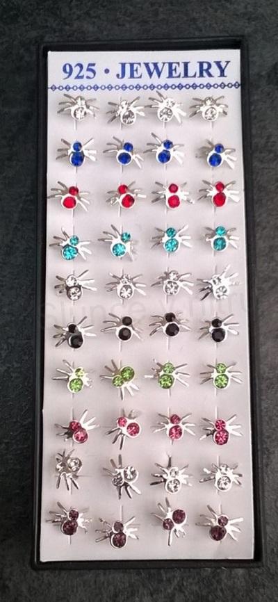 Krásné postříbřené náušnice s pavoučkem pro štěstí (spiderman) a zirkonem. Pavouček je propracován do detailů, má nepřehlédnutelný třpytivý vzhled. Jehož krása je zdůrazněna dopadem světla na jednotlivé plošky šperků, vhodný pro různé příležitosti, svatby,zásnuby, dar. Náušničky jsou pro svou lehkost vhodné i pro děti. Vybírejte podle čísel.
