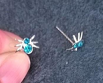 - Postříbřené náušnice pavouček, pavouk se zirkonem světle modré č.4 (BE209)