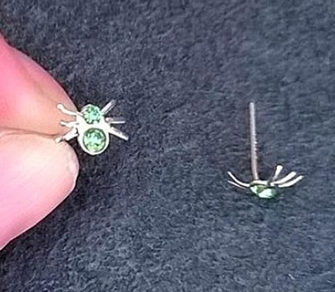 - Postříbřené náušnice pavouček, pavouk se zirkonem zelené č.6 (BE209)