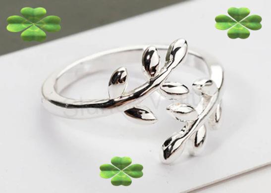- Postříbřený Otevřený prstýnek větvička strom Oliva nastavitelný (BP2)