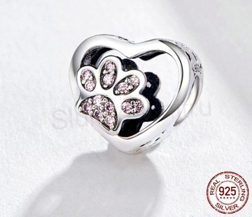 Postříbřený Royal korálek Pandora – tlapka v srdci (BE36)