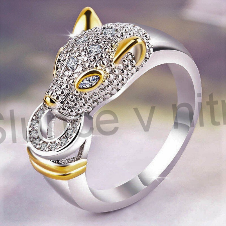 - Postříbřený, jemně pozlacený prsten Leopard se zirkony (BP102)