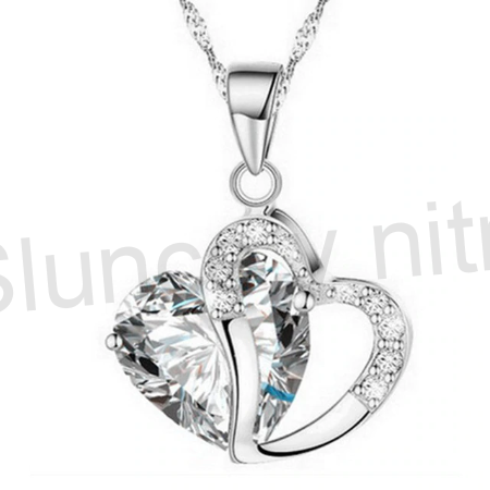 Postříbřený náhrdelník s přívěškem krystalu v srdci (BD94)