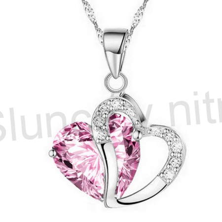 Postříbřený náhrdelník s přívěškem krystalu v srdci (BD95)