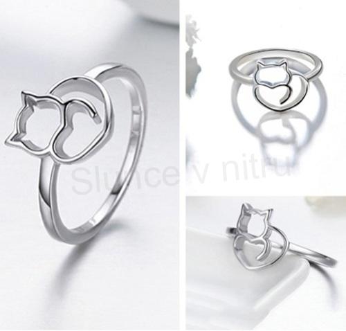 - Postříbřený prsten s motivem roztomilé kočky, velikost 59 (BP183)