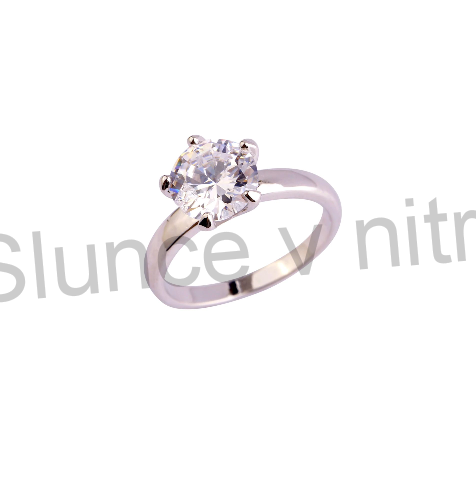 Nádherný postříbřený prsten s dominatním velkým čirým kulatým zirkonem potěší ženu, která miluje výrazné šperky. Je vhodný též jako stříbrný zásnubní, svatební prsten. Čirý zirkon krásně lomí světelné paprsky, na intenzivním světle na duhové odlesky.