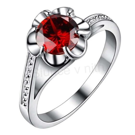 Pokovený elegantní prsten se zirkony ve tvaru kytičky. Prsten zdobí velký zirkon uprostřed a malé čiré zirkony po obouch stranách do čtvrtky prstenu. Tato kombinace působí velmi nadčasově. Prsten je postříbřen, je pevný a dokonalý, není barvený. Prsten je vhodný pro ženy i dívky pro svou jemnost a krásu.