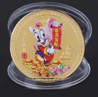 Pozlacená Pamětní mince - Zvěrokruh krysa - myš, mince blahobytu, štěstí ( hezká do sbírky nebo jako dárek )