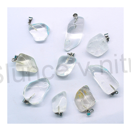 Klasický minerální kamínkový přívěšek Křišťál. Prosím berte na vědomí, že každý kámen je jiný, proto je každý originál, výběr je náhodný. Kamínky jsou různé velikosti a tvarů.