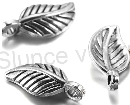 Přívěsek lístek. Přívěšek vhodný pro tvorbu náušnic, přívěšků, náramků. Vysoký lesk.