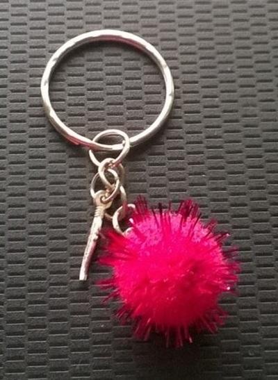 Přívěsek na klíče - barevná bambulka s listkem růžová (H282)skladem 2 ks60,00 Kč/ ks