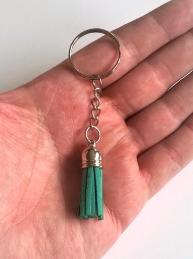 Klíčenka je vyrobena z kvalitního, nezávadného materiálu. Přivěšek je z kožených střapců v lepený do stříbrné plastové koncovky. Vhodná na kabelky, tašky, batohy, peněženky, ozdobná dekorace.