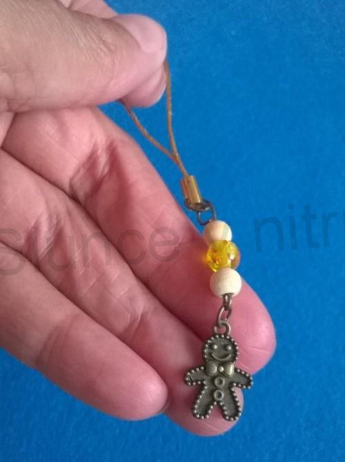 - Přívěsek na klíče - perníček s resin kuličkou a dřevem starobronz (H316)