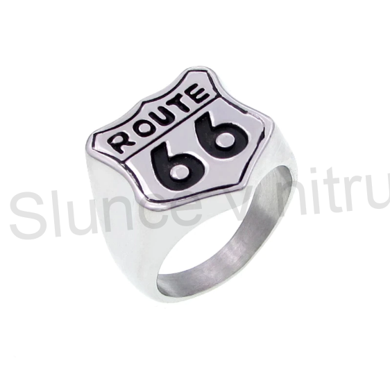 Oblíbený prsten z chirurgické oceli Route 66, pro motorkáře, rockera, správnýho muže. Oblíbený modní dopněk.