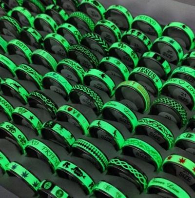 Super prsten, který svití ve tmě, z chirurgické oceli, různé moderní vzory, motivy, prsten se nabijí denním, slunečním světlem. je potažen luminous, fosforečnou páskou, která svití. Každý prsten má jiný motiv. Prosím vybírejte podle čísel.