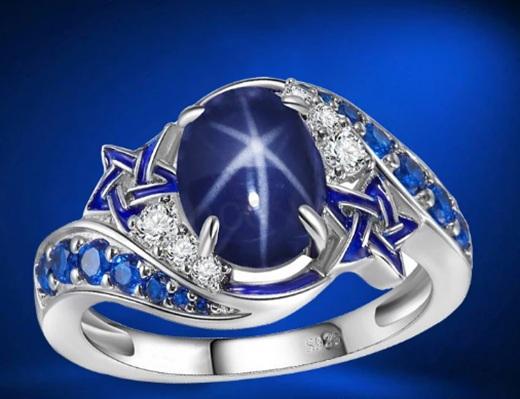 Krásný prsten v modrém provedení se zářivou hvězdou jako neocenitelný klenot, má překrásné zdobení modrých a bílých krystalů, po stranách prstenů. Nádherné zpracování se zajimavým provrdením.