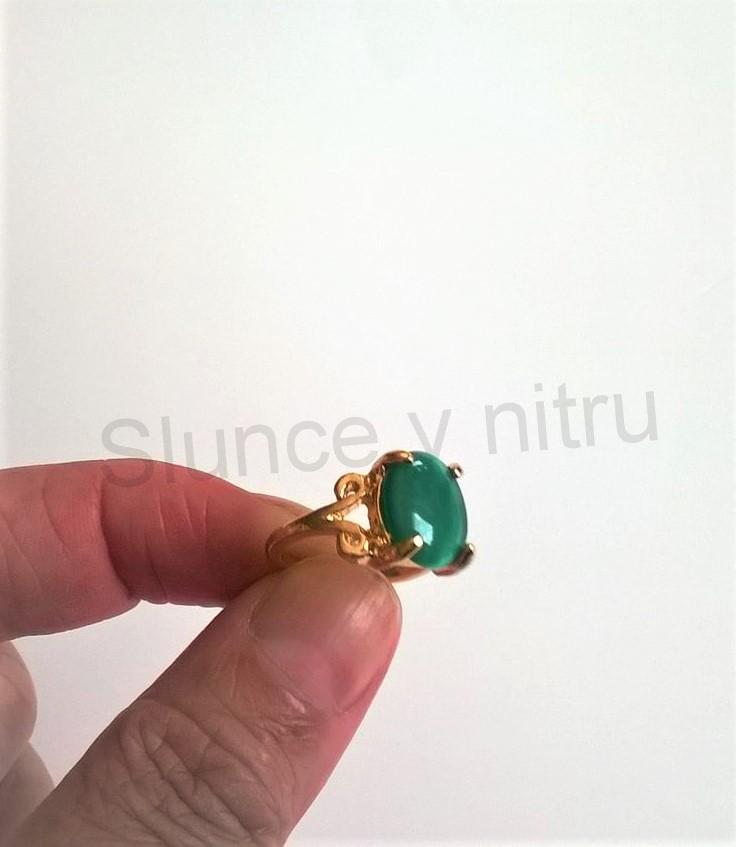 Ozdobný prsten s polodrahokamenem Kočičí oko vysokého lesku se zirkony, jemné zdobení kolem kamene vše vezlaté barvě. Prsten je z galvanického kovu, krásně vyniká jeho krása a lesk. Polodrahokam je uchycen tak, aby dobře držel a nevypadl. Prstýnek je vhodný ke všem ostatním šperkům. Hodí se jak pro ženy, tak pro dívky.