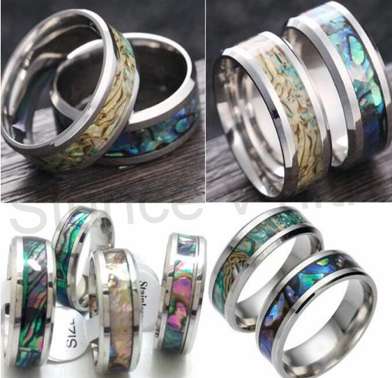 Elegantní snubní, prsten z chirurgické oceli a přírodní mušle Abalone ( Paua mušle ). Tato kombinace působí velmi nadčasově. Prsten je pozlacen, je pevný a dokonalý, není barvený. Dokonalý dárek pro milovníky přírody. Mušle je vybroušená do pásu a vsazená do prstenu.