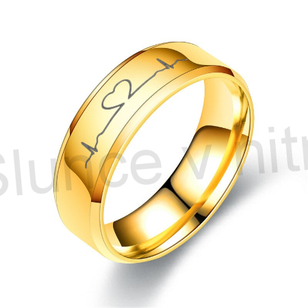 Zásnubní, snubní, modní, punc, prsten z chirurgické oceli, lesklý, zlaté barvy. Nese napis Milenců, proto je i prsten vhodný jako svatební prstýnky. Vysoké kvality, aby dobře vynikla jeho krása a lesk. na světle odraží lesk. Prsten je originální, má dvě funkce buď jako modní doplněk, nebo na velmi zvláštní slavnostní den. Prsten je vhodný ke všem ostatním šperkům a pro všechny události.