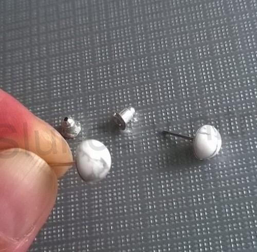 Krásné puzetové náušnice s minerálem magnezit z chirurgické oceli. Vhodné pro každý den, na jakoukoliv společnost a pro každého. Jsou velmi lehoučké elegantní. Náušničky jsou zajištěné kovovou zarážkou, která zabraňuje případné ztrátě. Pro svou velikost vhodné i pro děti. Náušnice jsou originál, proto je každý kámen jiný, snažíme se najít k sobě stejný.