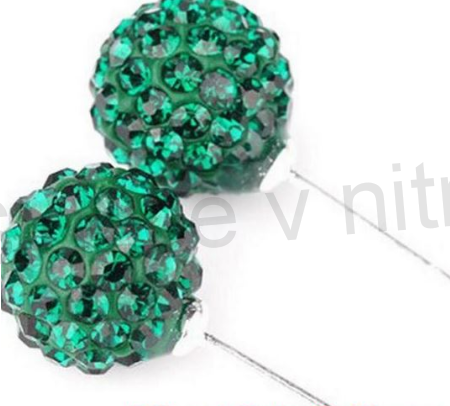 - Puzetové náušnice postříbřené s křišťálky CZ tmavě zelená (BB289)