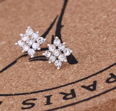 Třpytivé geometrické náušnice se zirkony, zaručeně rozzáří každý obličej. Oblíbený motiv, který můžete nosit kamkoliv půjdete. Svojí jemností jsou vhodné i pro dívky a děti. Náušnice mají zapínání na puzetu. Svatby, slavnosti, dárky.